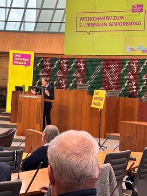 Auf Einladung der FDP-Landesfraktion und der Initiative der Liberalen Senioren NRW kamen am 15. März 2024 über 150 Personen Ü60 in den Landtag NRW nach Düsseldorf, um sich im großen Plenarsaal über gesellschaftliche Rahmenbedingungen liberaler Politik zu informieren.