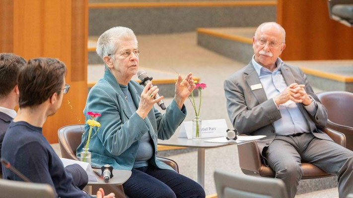 Insbesondere der lebhafte Vortrag der Vorsitzenden und Gründerin von "Silbernetz e.V." Elke Schilling beeindruckte die Zuhörer. Auf ehrenamtlicher Basis stellen bundesweit geschulte Ansprechpartner rund um die Uhr ein niedrigschwelliges telefonisches Angebot zum aktiven Zuhören für einsame Menschen zur Verfügung.